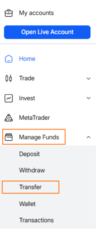 - Firstly, transfer the funds you wish to withdraw from the trading account to the Wallet.